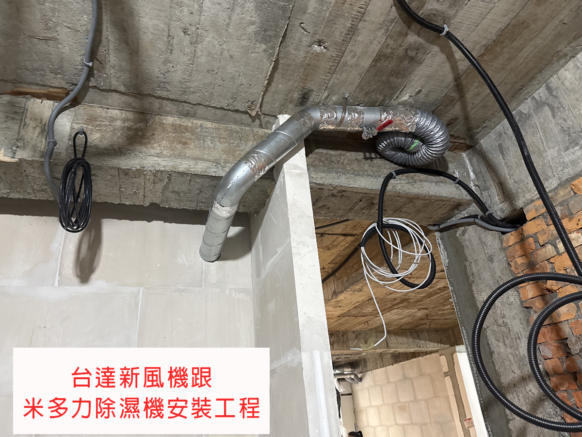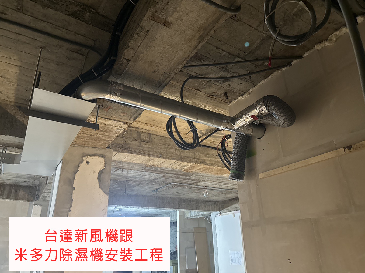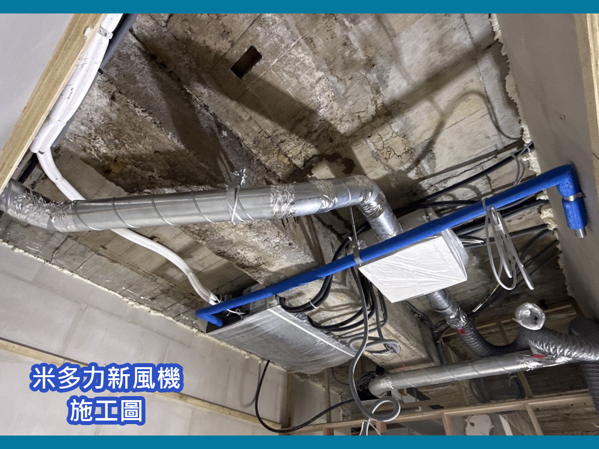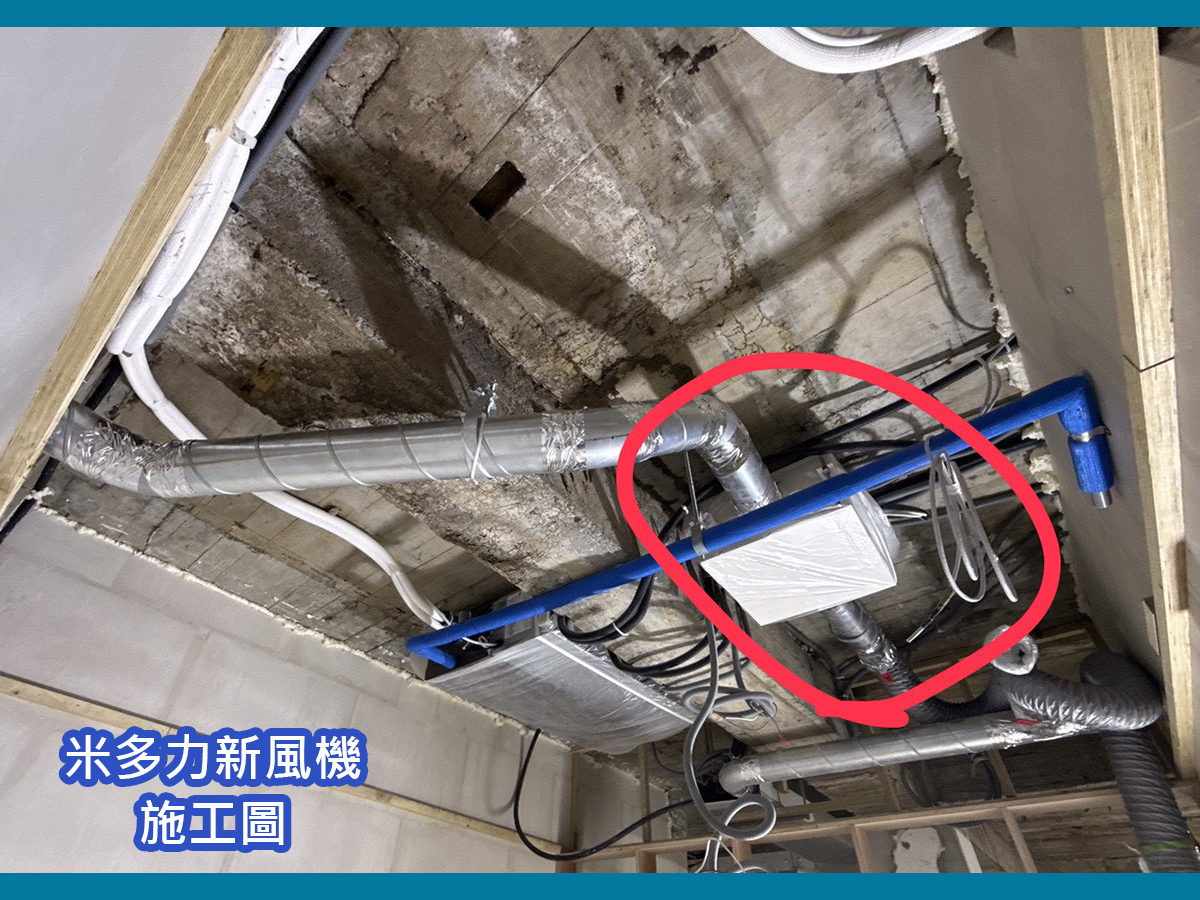 本案為老屋翻新工程,施作重點並非冷氣空調系統,而是台達新風機與米多力除濕機的設備安裝與現場整合。由於本案涉及風管配置、風量分配、設計整合與後續校正,因此施工關鍵不只是把設備裝上去,而是要讓每個空間都能得到合理且穩定的新風與除濕效果。