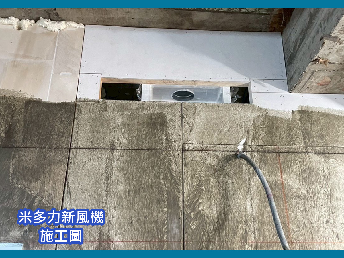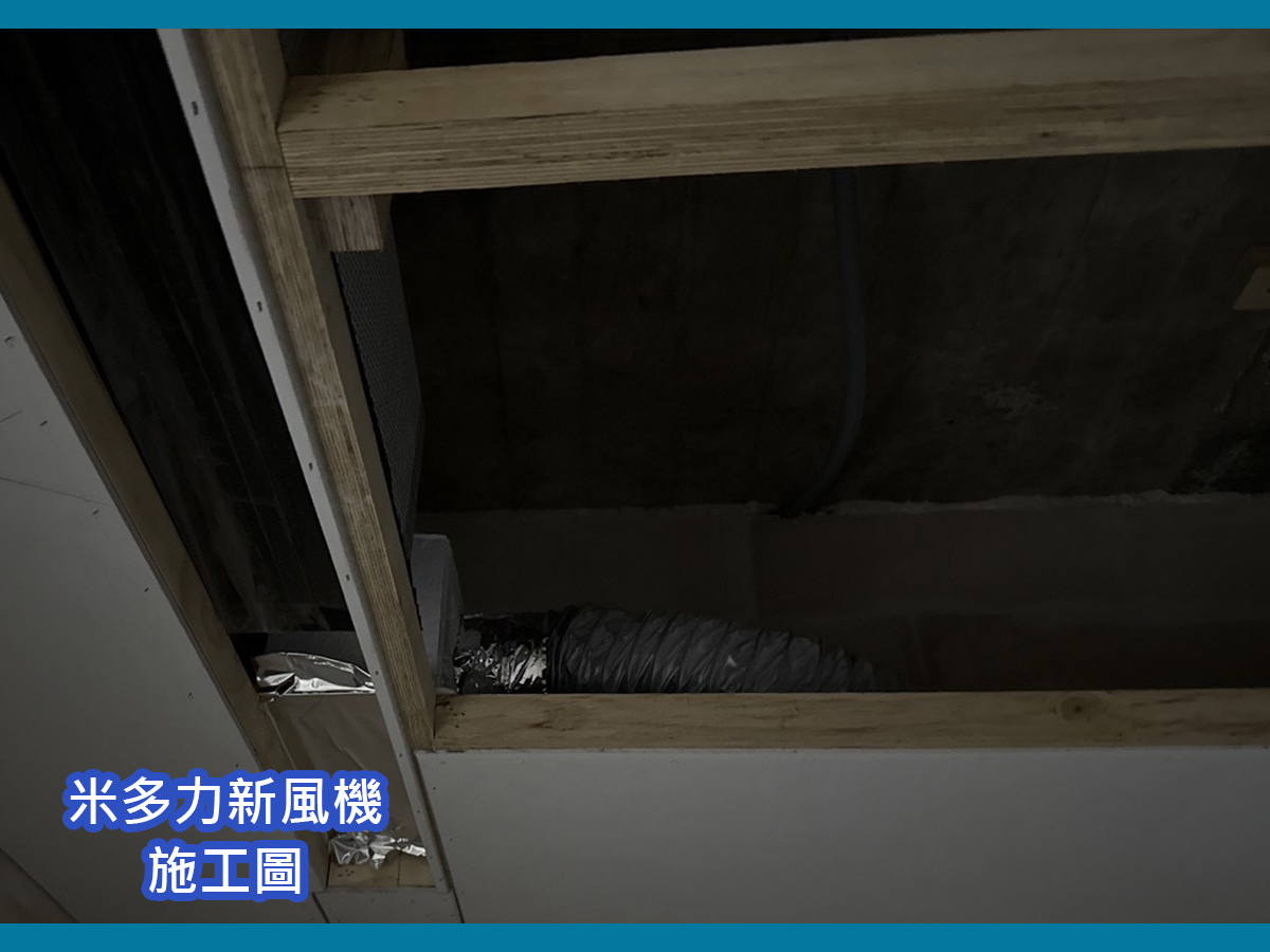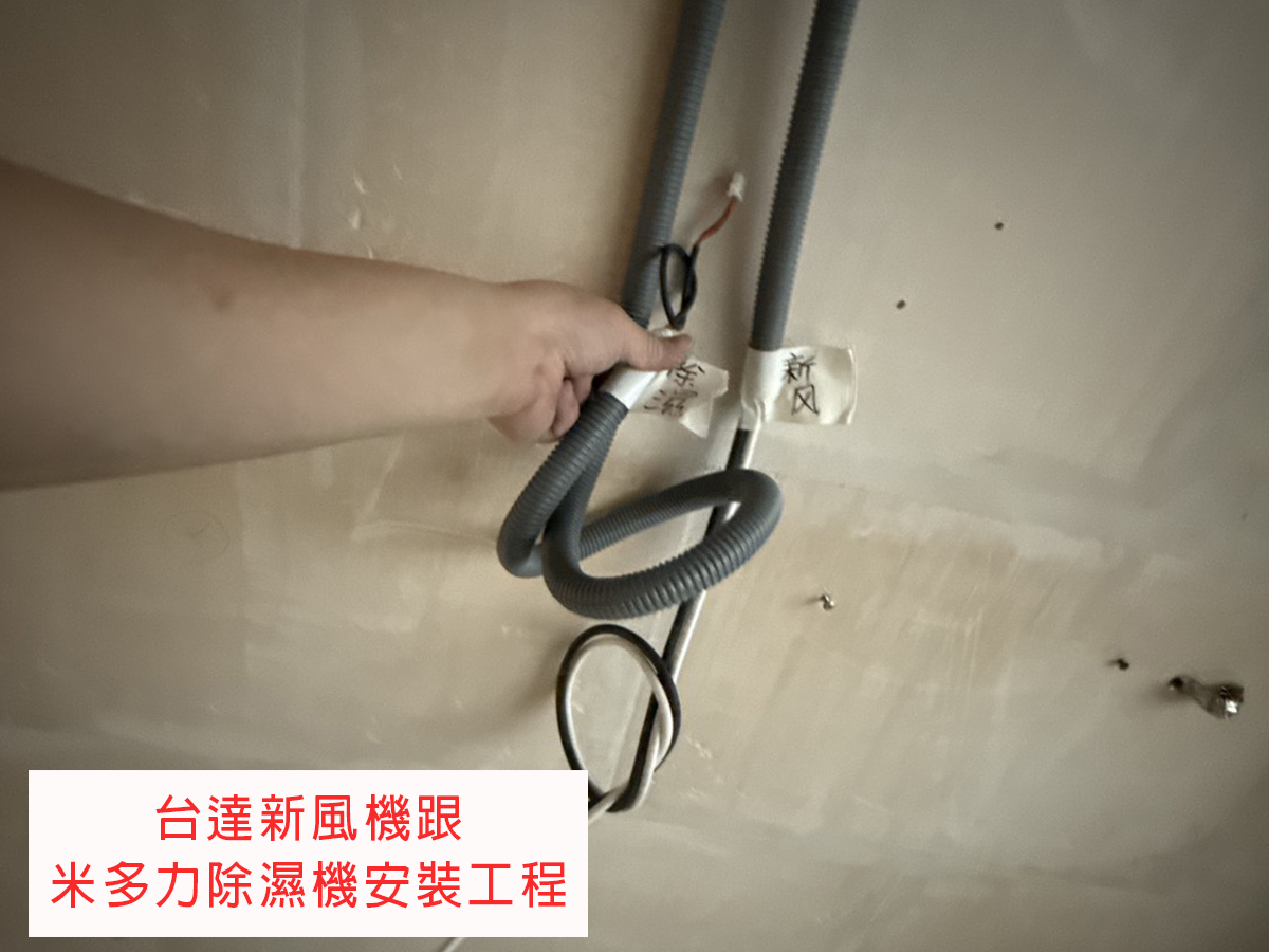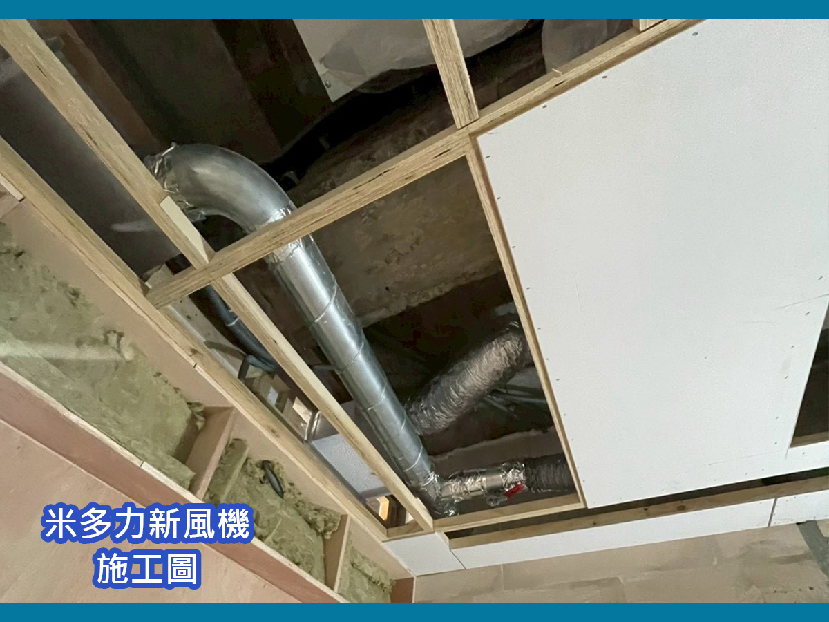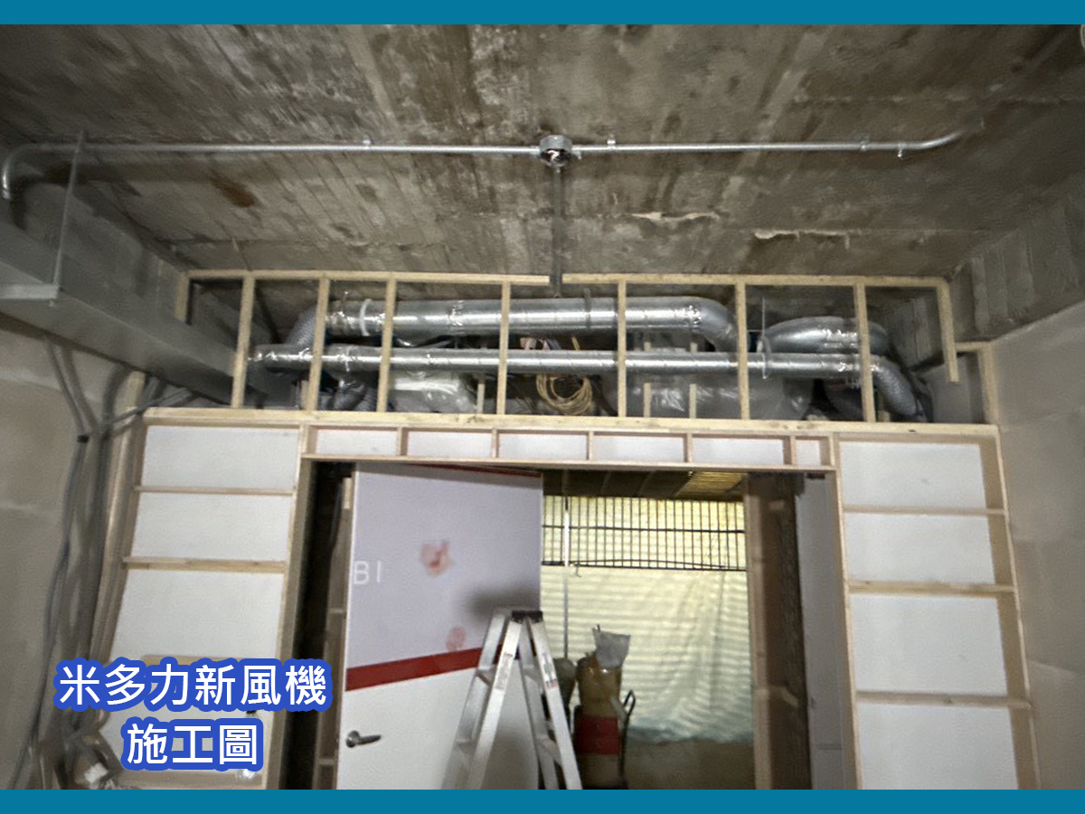 本案為老屋翻新工程,施作重點並非冷氣空調系統,而是台達新風機與米多力除濕機的設備安裝與現場整合。由於本案涉及風管配置、風量分配、設計整合與後續校正,因此施工關鍵不只是把設備裝上去,而是要讓每個空間都能得到合理且穩定的新風與除濕效果。
