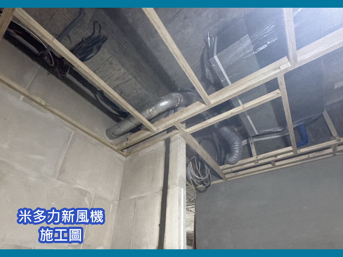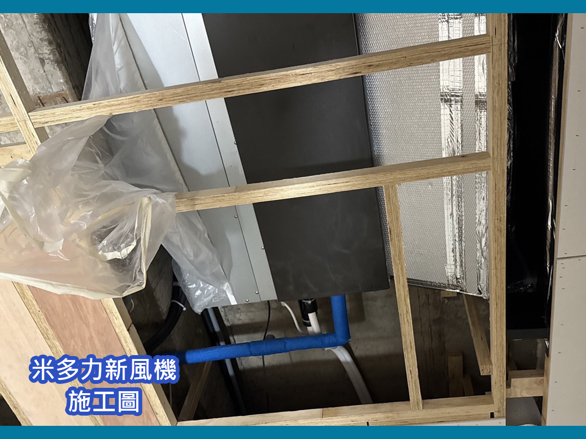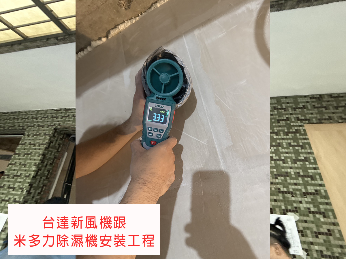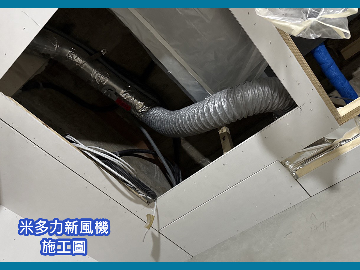 本案為老屋翻新工程,施作重點並非冷氣空調系統,而是台達新風機與米多力除濕機的設備安裝與現場整合。由於本案涉及風管配置、風量分配、設計整合與後續校正,因此施工關鍵不只是把設備裝上去,而是要讓每個空間都能得到合理且穩定的新風與除濕效果。