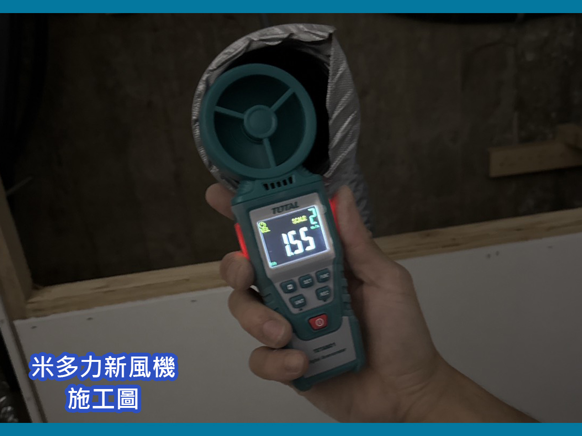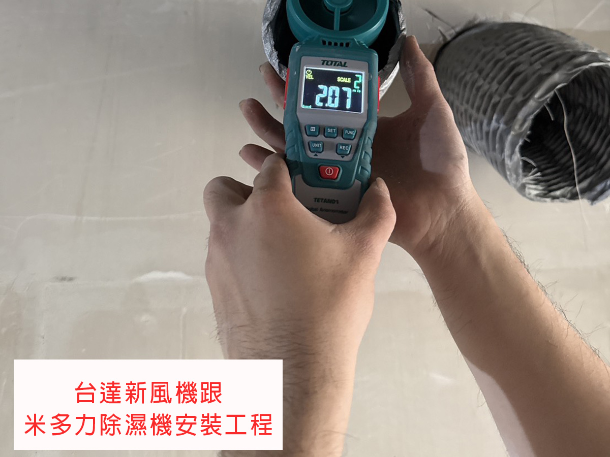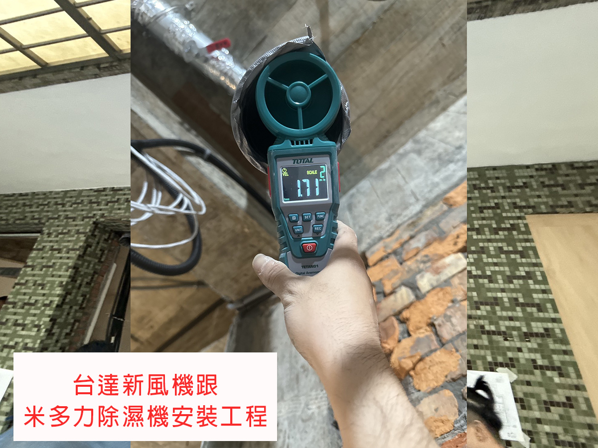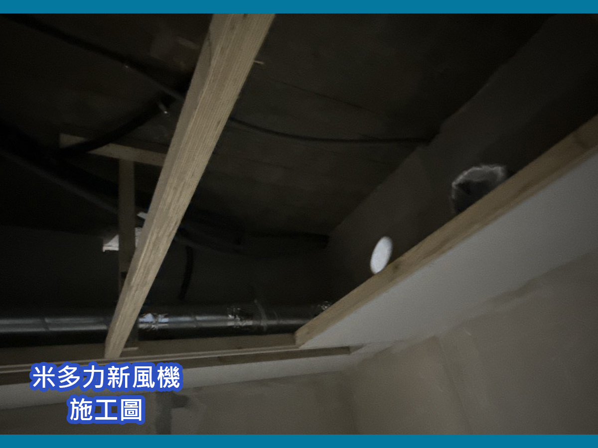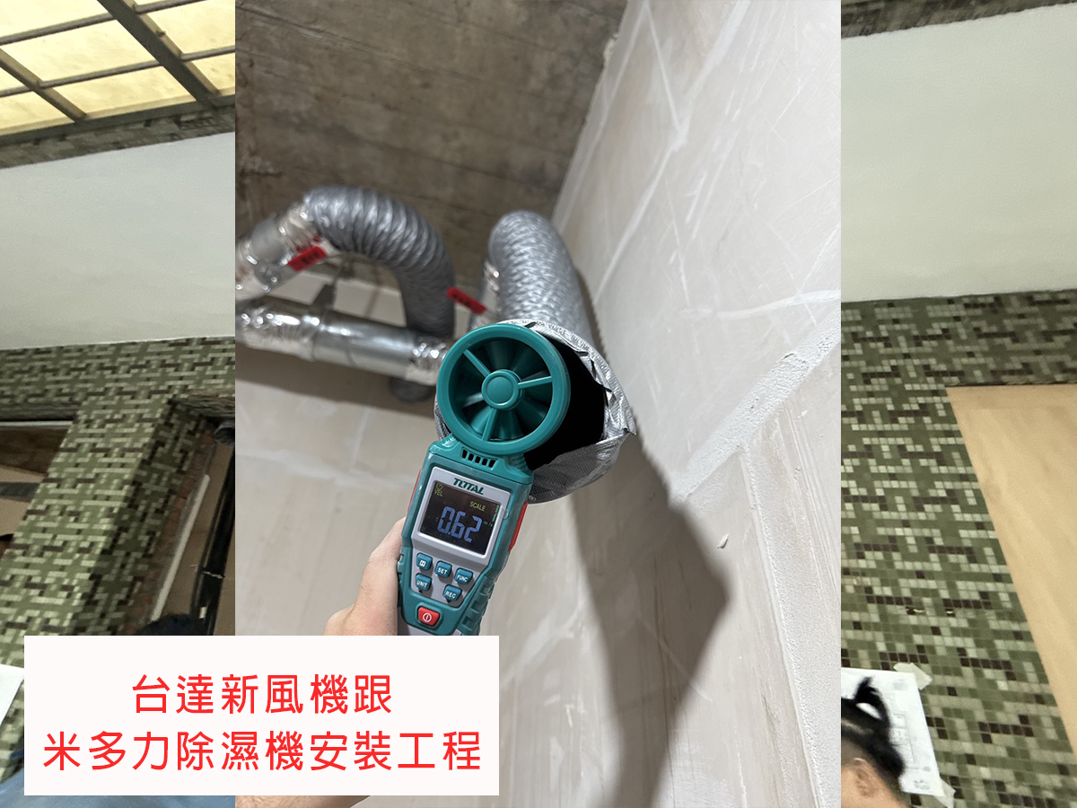 本案為老屋翻新工程,施作重點並非冷氣空調系統,而是台達新風機與米多力除濕機的設備安裝與現場整合。由於本案涉及風管配置、風量分配、設計整合與後續校正,因此施工關鍵不只是把設備裝上去,而是要讓每個空間都能得到合理且穩定的新風與除濕效果。