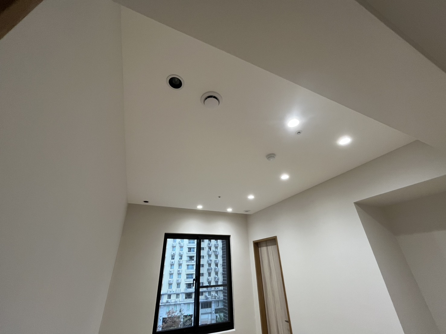 此外,業主另加裝空氣品質偵測器,並整合 Wi-Fi 功能,可透過 Apple Home Key 進行控制,包含手機操作與語音指令啟動。空氣品質偵測器亦可即時顯示二氧化碳、PM2.5 與甲醛等數據,使居家環境狀態更加透明。整體系統完成後,業主對施工成果與實際使用效果皆表示滿意。