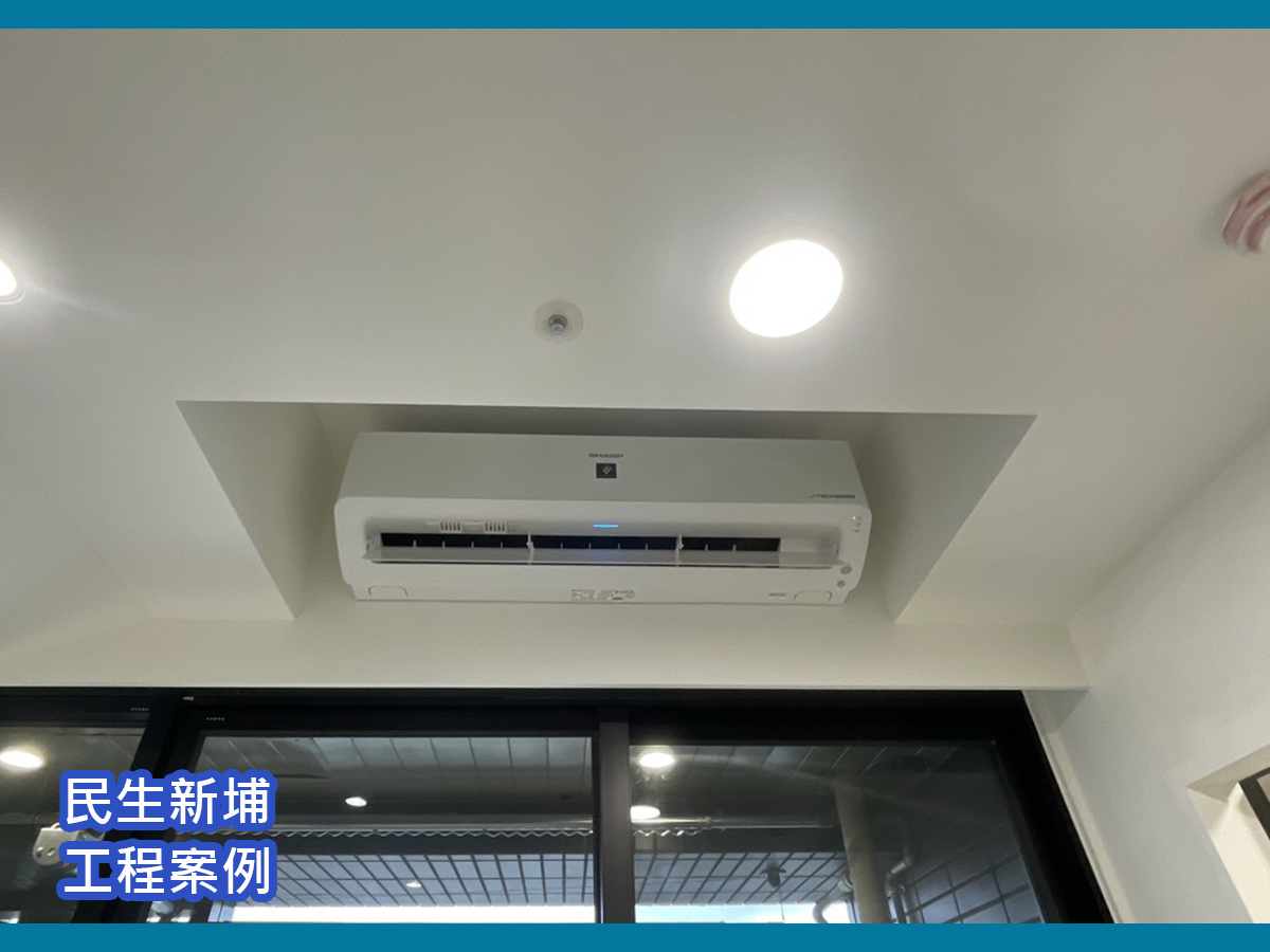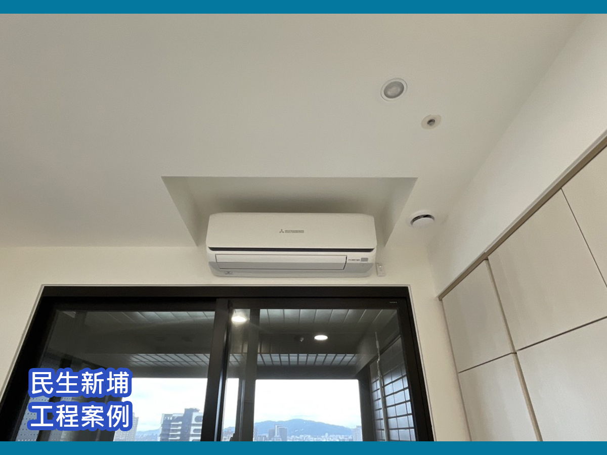 另外一個較特別的地方在於設備品牌的選擇,房間部分採用一對二的三菱重工系統,客廳則選擇 SHARP。業主認為客廳並非最主要使用空間,希望能選擇較為平價的品牌。後續業主也自行於電器展選購設備,再由我們負責安裝,相關安裝作業對我們而言並無困難。