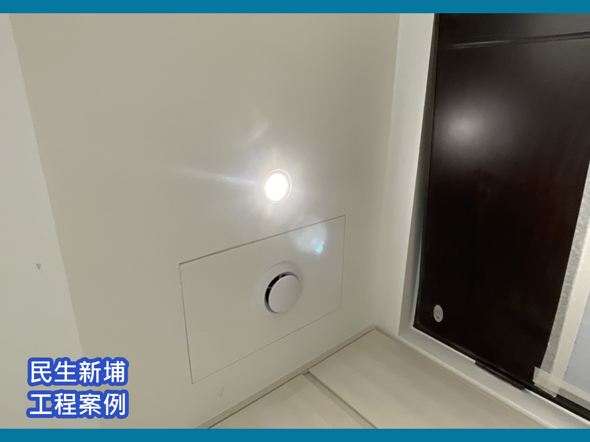 由於室內排水高度受限,系統配置必須依照既有條件進行調整,而我們先前已有同一建案其他戶別的施工經驗,對於大樓結構與排水方式相對熟悉,因此在評估上能更貼近實際狀況。