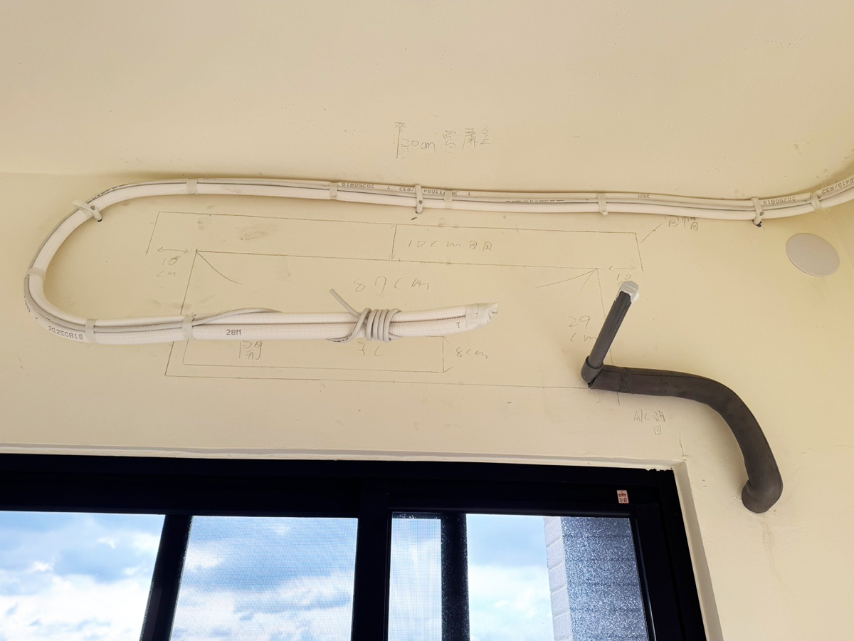 舉例來說,土城林先生的新成屋案例中,我們設計了 吊隱式冷氣 + 壁掛式冷氣 + 全熱交換器 的組合,不僅保留空間彈性,還將冷氣管線巧妙隱藏於天花板結構內。最終完成的效果不僅美觀大方,也能兼顧 施工效率、工期準確與長期維護便利性。